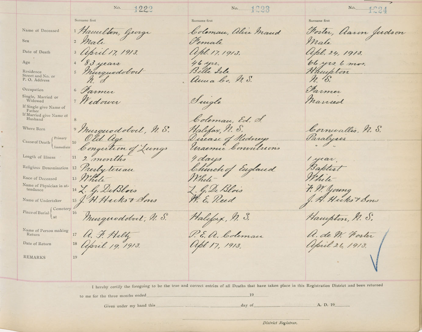 Death Registration: Year: 1913 book: 1 page: 204 number: 1224