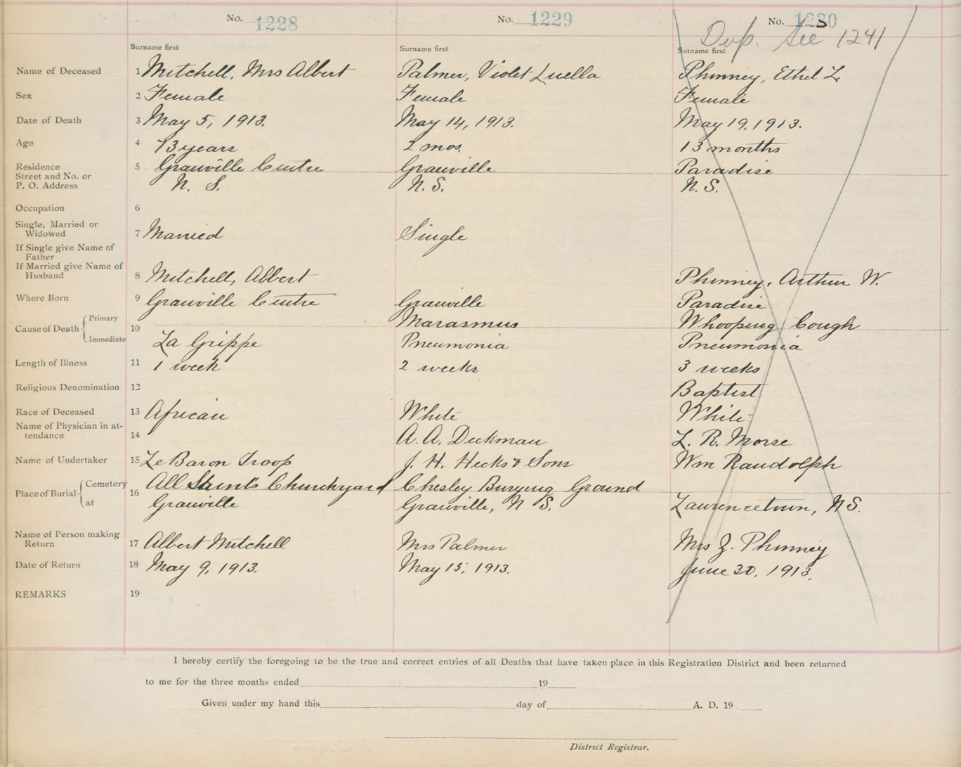 Death Registration: Year: 1913 book: 1 page: 205 number: 1230