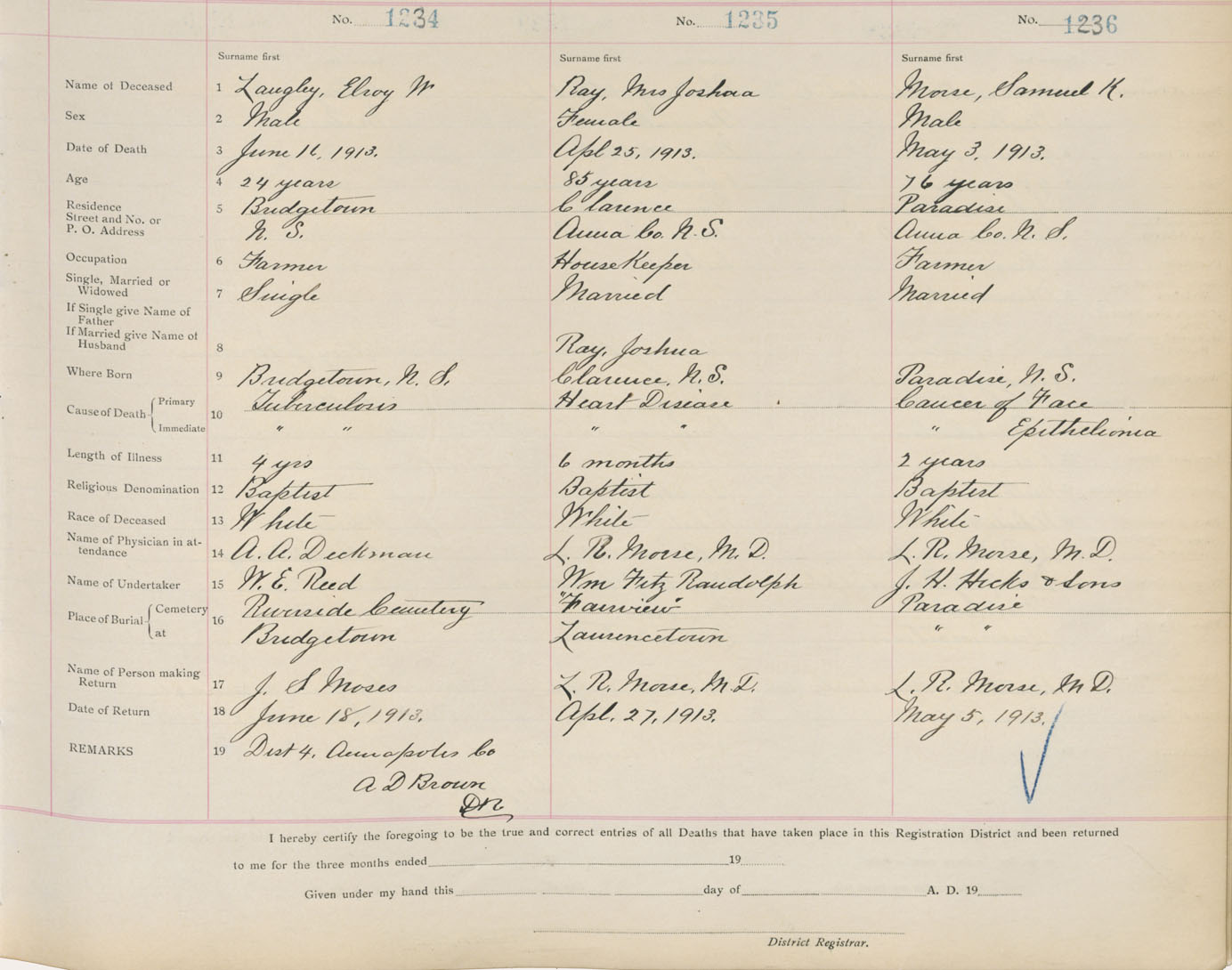 Death Registration: Year: 1913 book: 1 page: 206 number: 1236