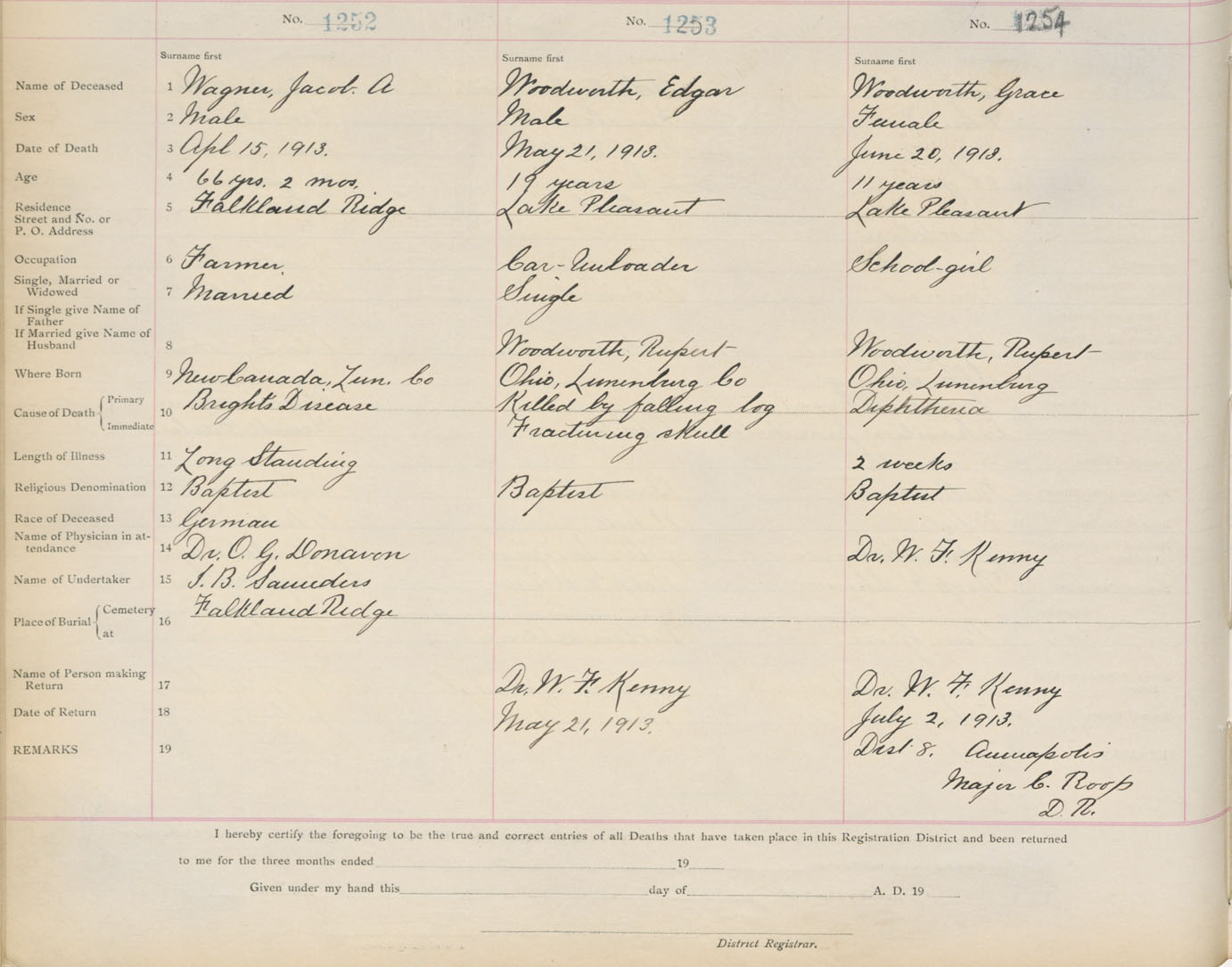 Death Registration: Year: 1913 book: 1 page: 209 number: 1254