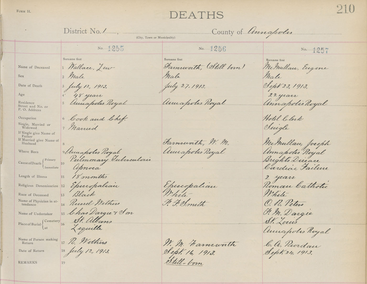 Death Registration: Year: 1913 book: 1 page: 210 number: 1257