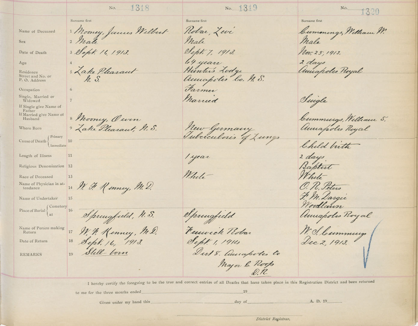 Death Registration: Year: 1913 book: 1 page: 220 number: 1320