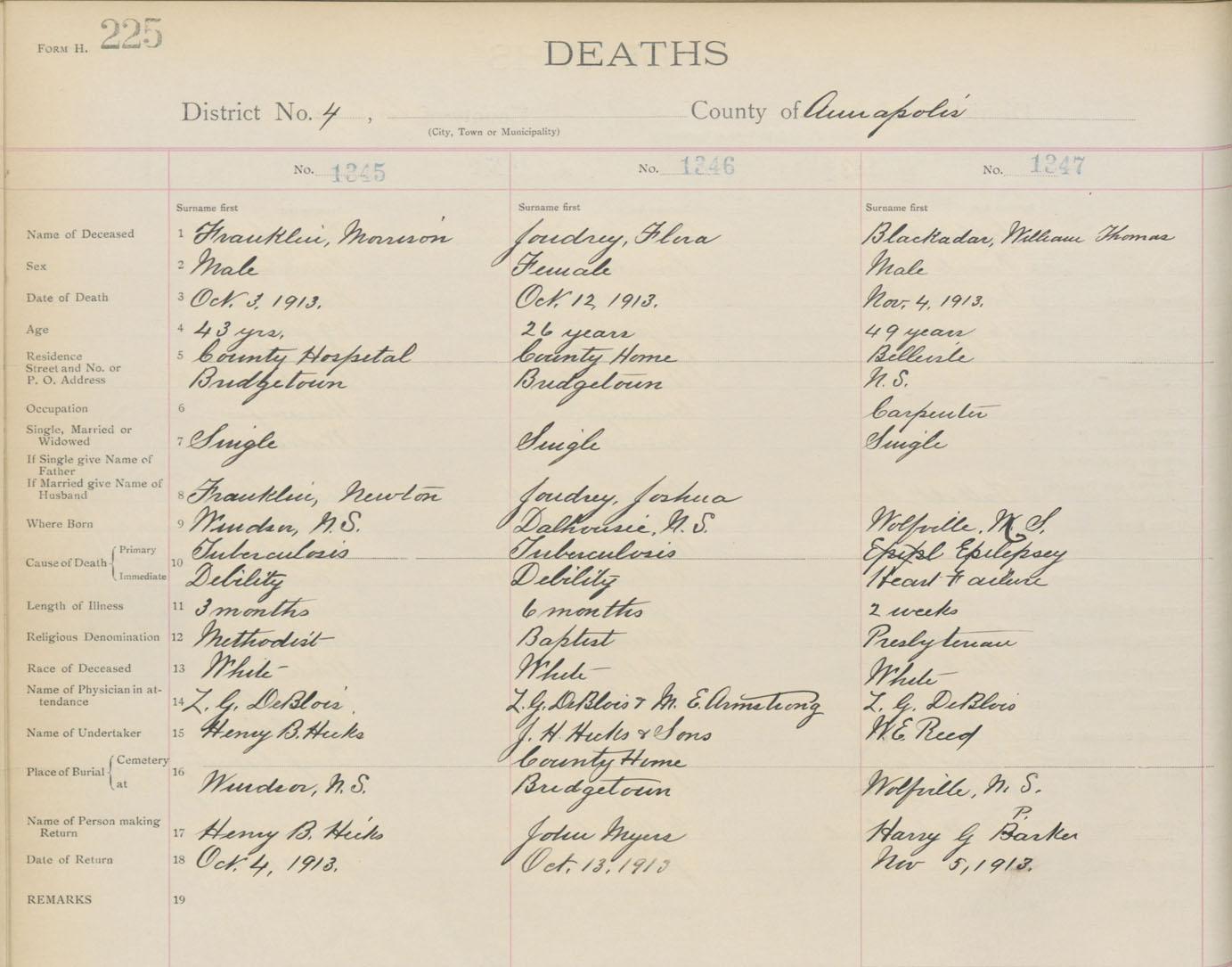 Death Registration: Year: 1913 book: 1 page: 225 number: 1347