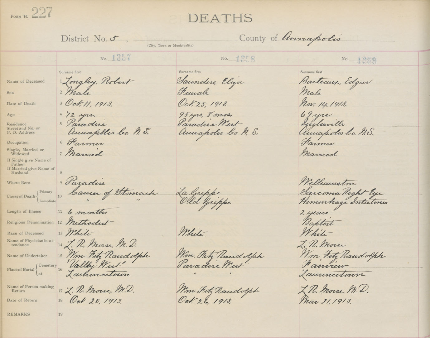 Death Registration: Year: 1913 book: 1 page: 227 number: 1359