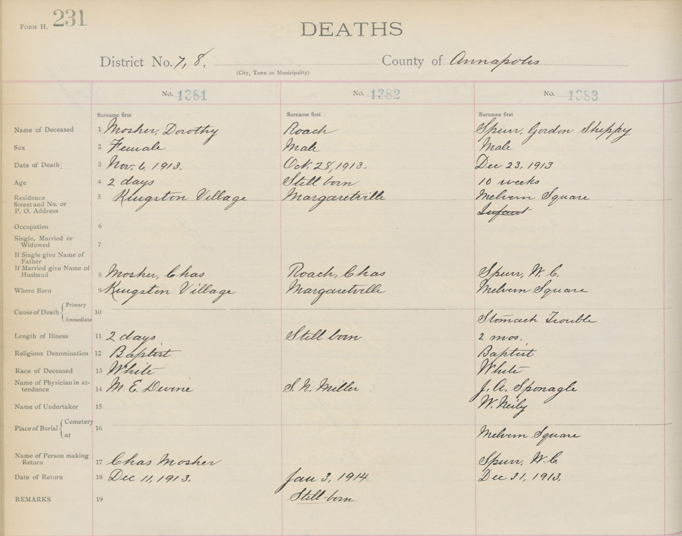 Death Registration: Year: 1913 book: 1 page: 231 number: 1383