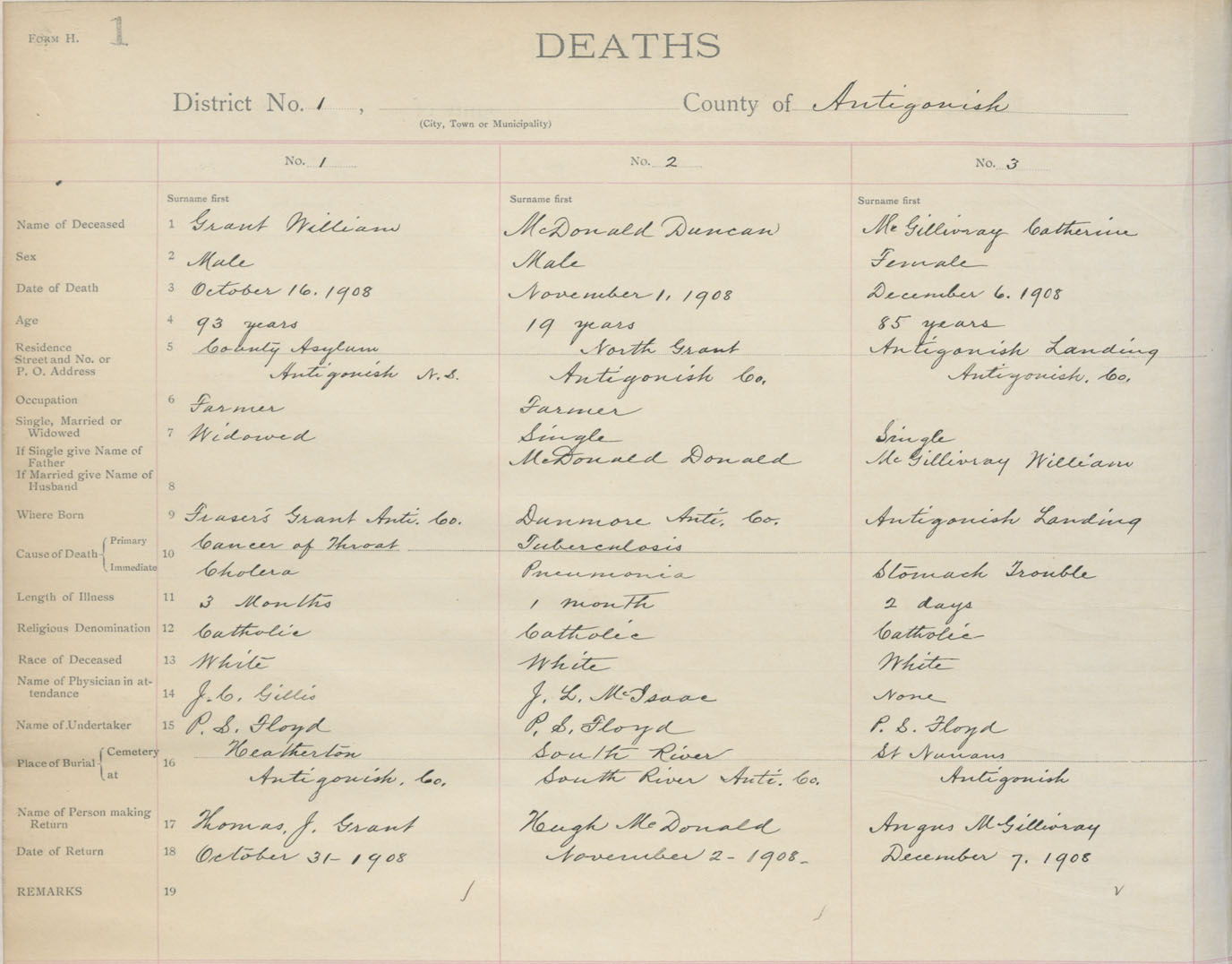 Death Registration: Year: 1908 book: 2 page: 1 number: 3