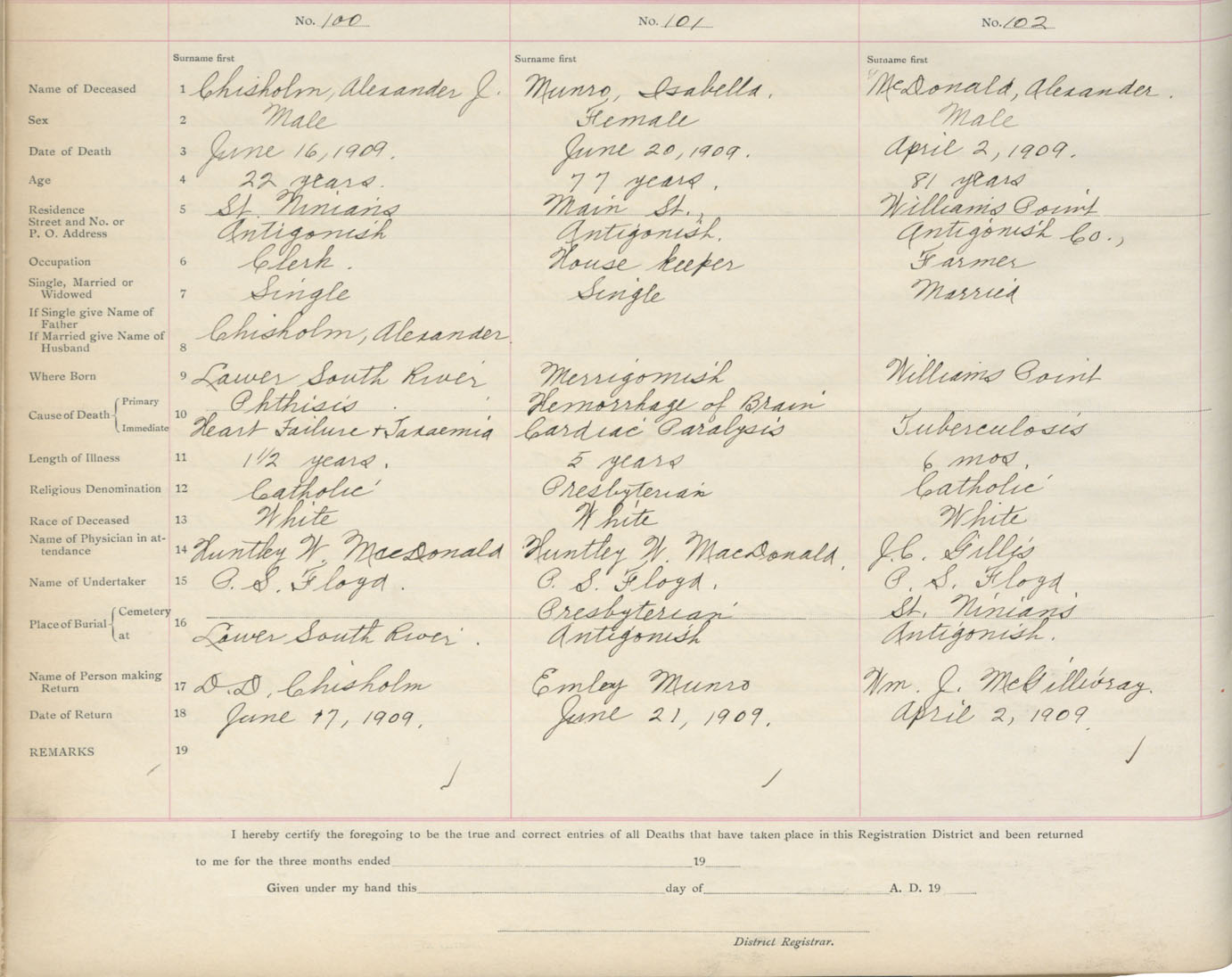Death Registration: Year: 1909 book: 2 page: 17 number: 100