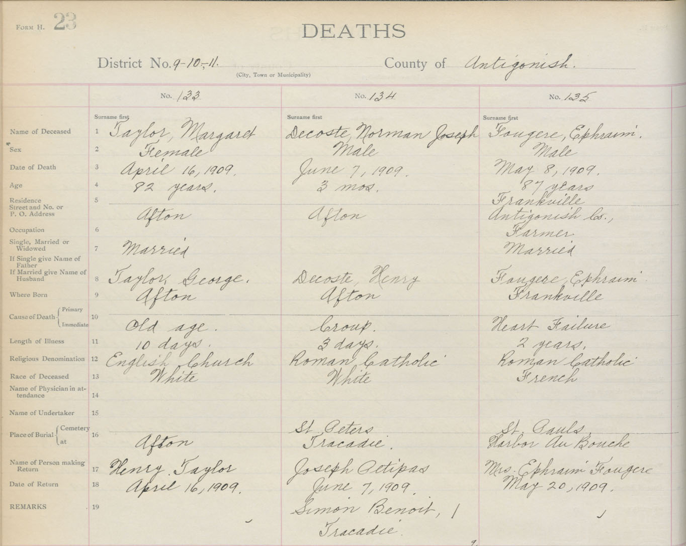 Death Registration: Year: 1909 book: 2 page: 23 number: 133