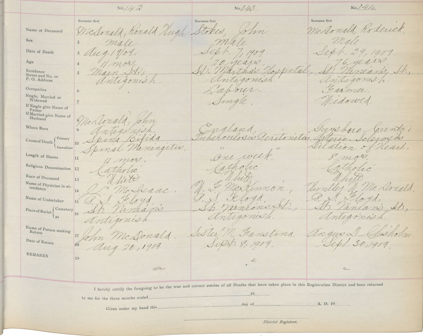 Death Registration: Year: 1909 book: 2 page: 24 number: 142