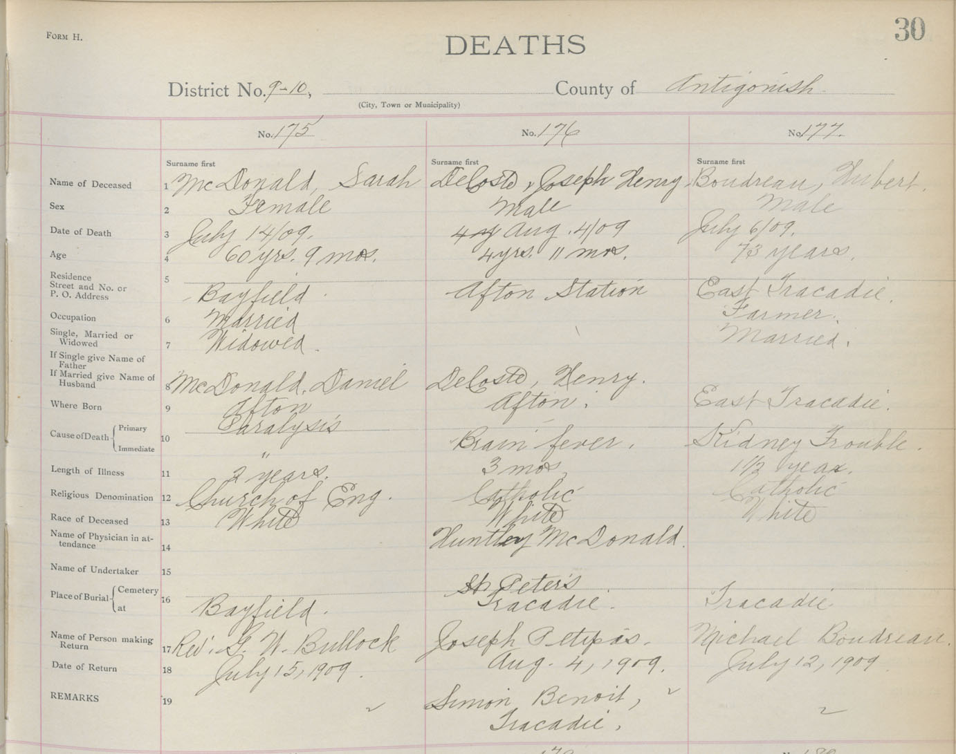 Death Registration: Year: 1909 book: 2 page: 30 number: 175