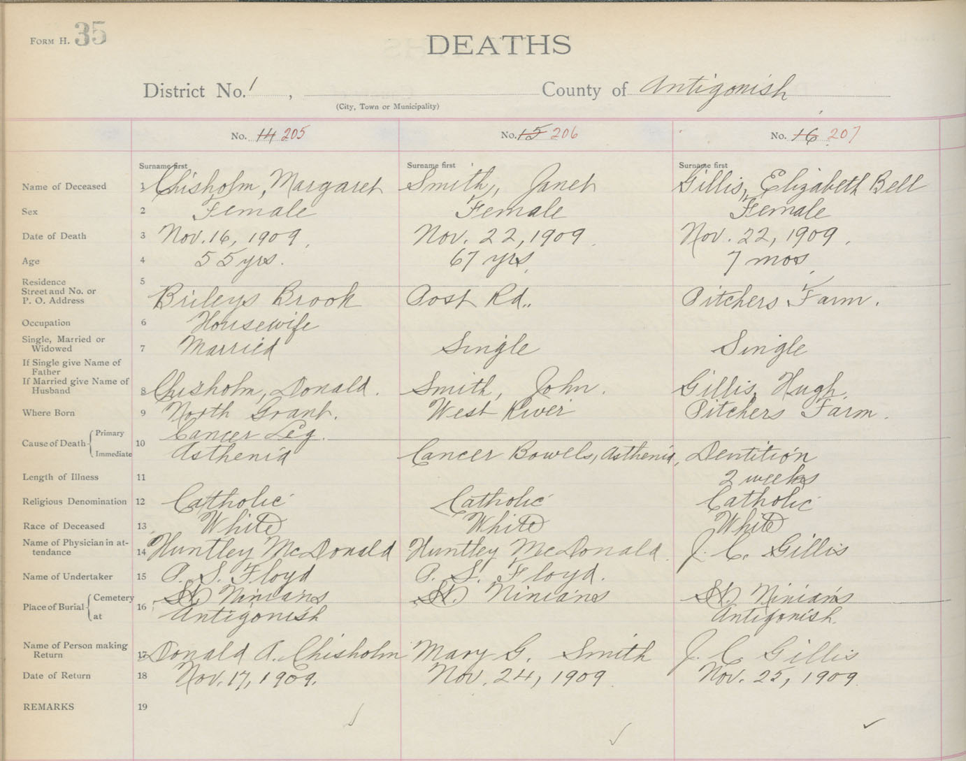Death Registration: Year: 1909 book: 2 page: 35 number: 205