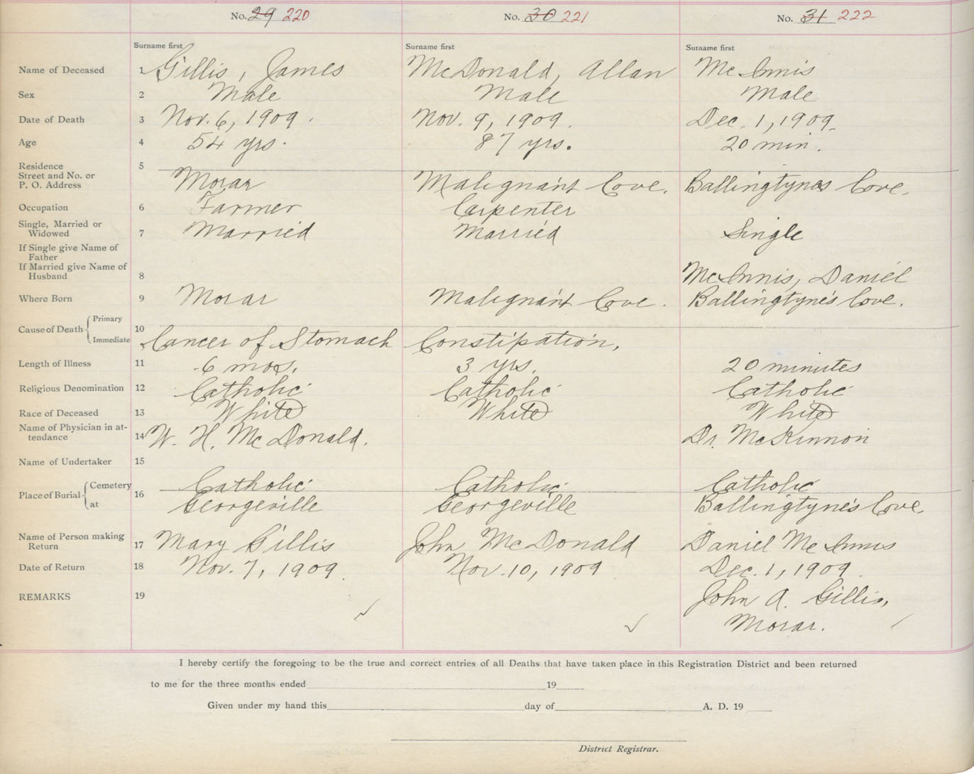 Death Registration: Year: 1909 book: 2 page: 37 number: 220
