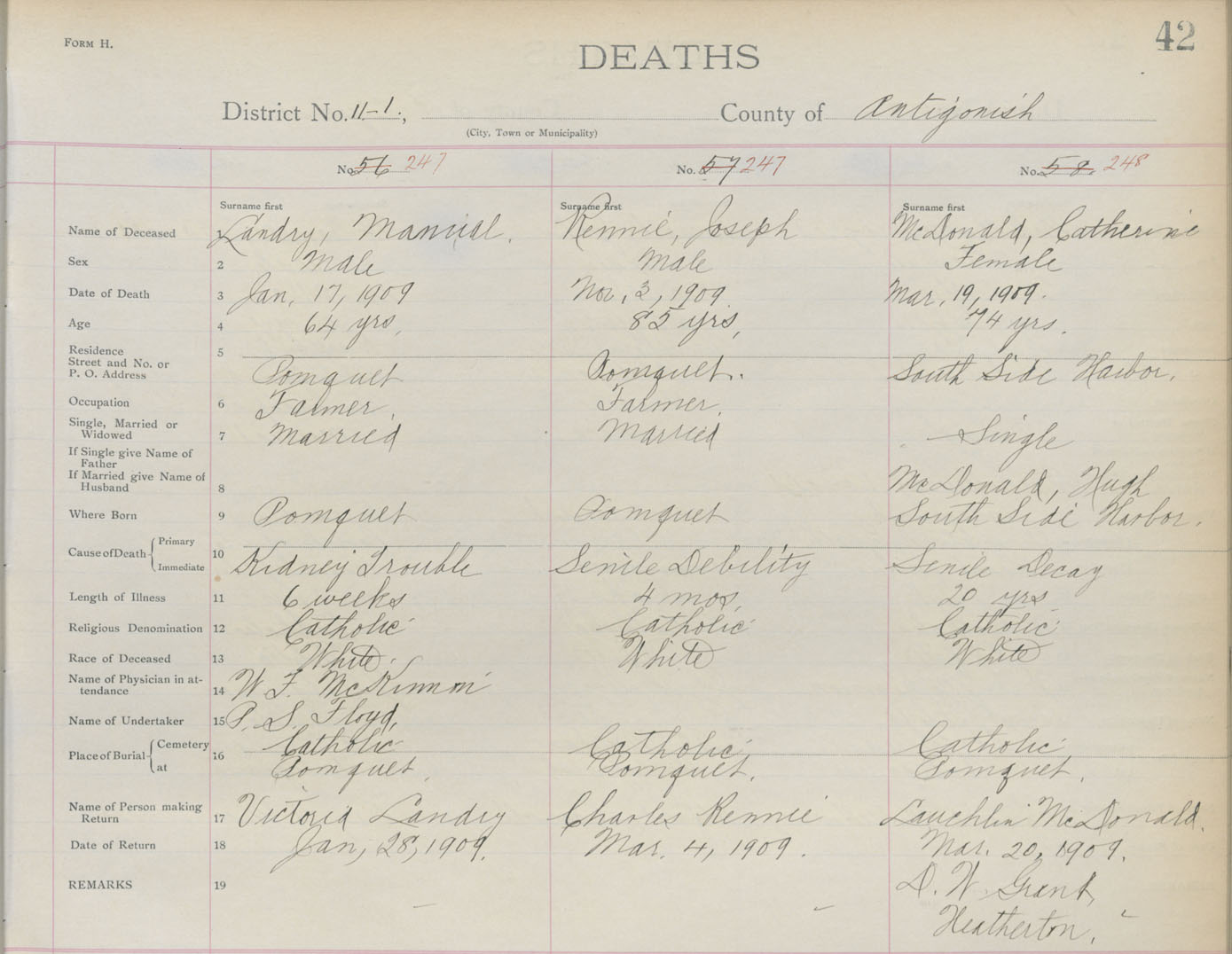 Death Registration: Year: 1909 book: 2 page: 42 number: 247