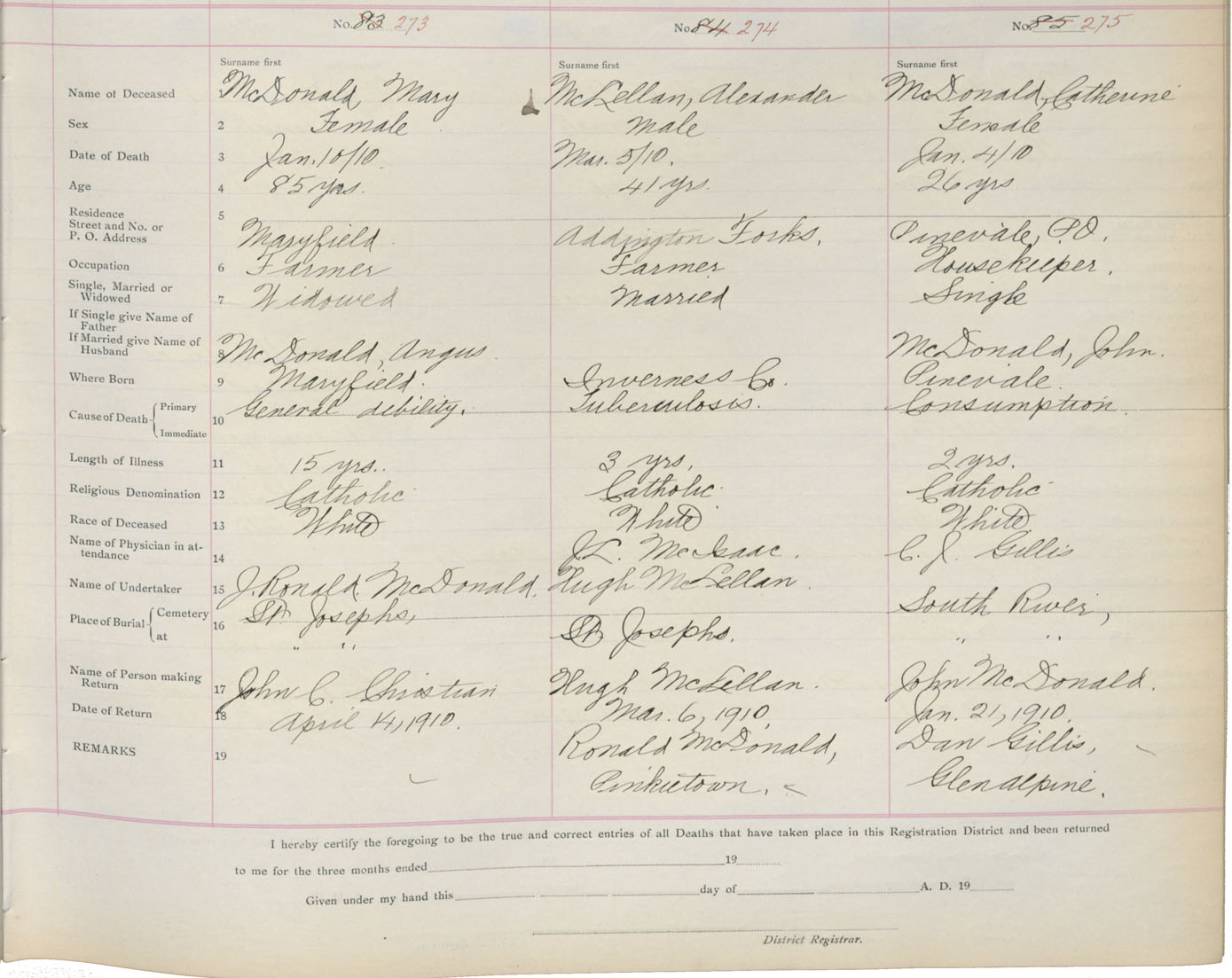 Death Registration: Year: 1910 book: 2 page: 46 number: 273