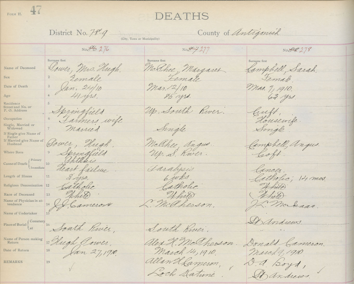 Death Registration: Year: 1910 book: 2 page: 47 number: 276