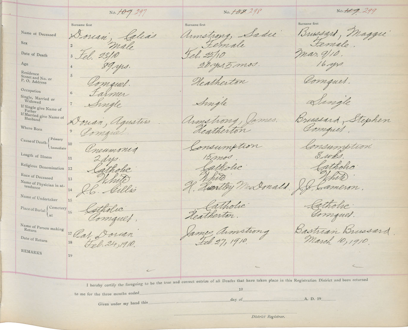 Death Registration: Year: 1910 book: 2 page: 50 number: 297