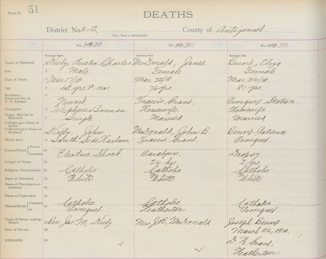 Death Registration: Year: 1910 book: 2 page: 51 number: 300