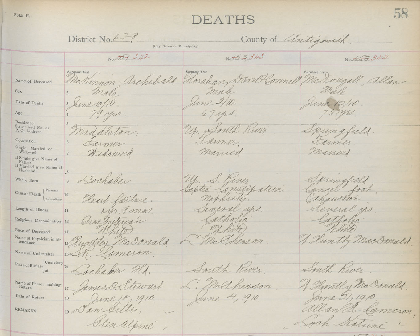 Death Registration: Year: 1910 book: 2 page: 58 number: 342