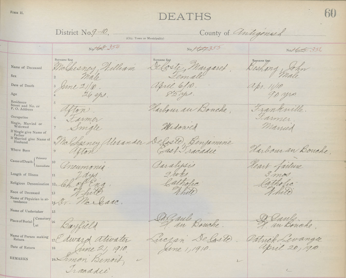 Death Registration: Year: 1910 book: 2 page: 60 number: 354
