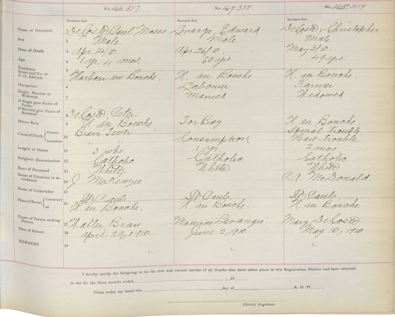 Death Registration: Year: 1910 book: 2 page: 60 number: 357