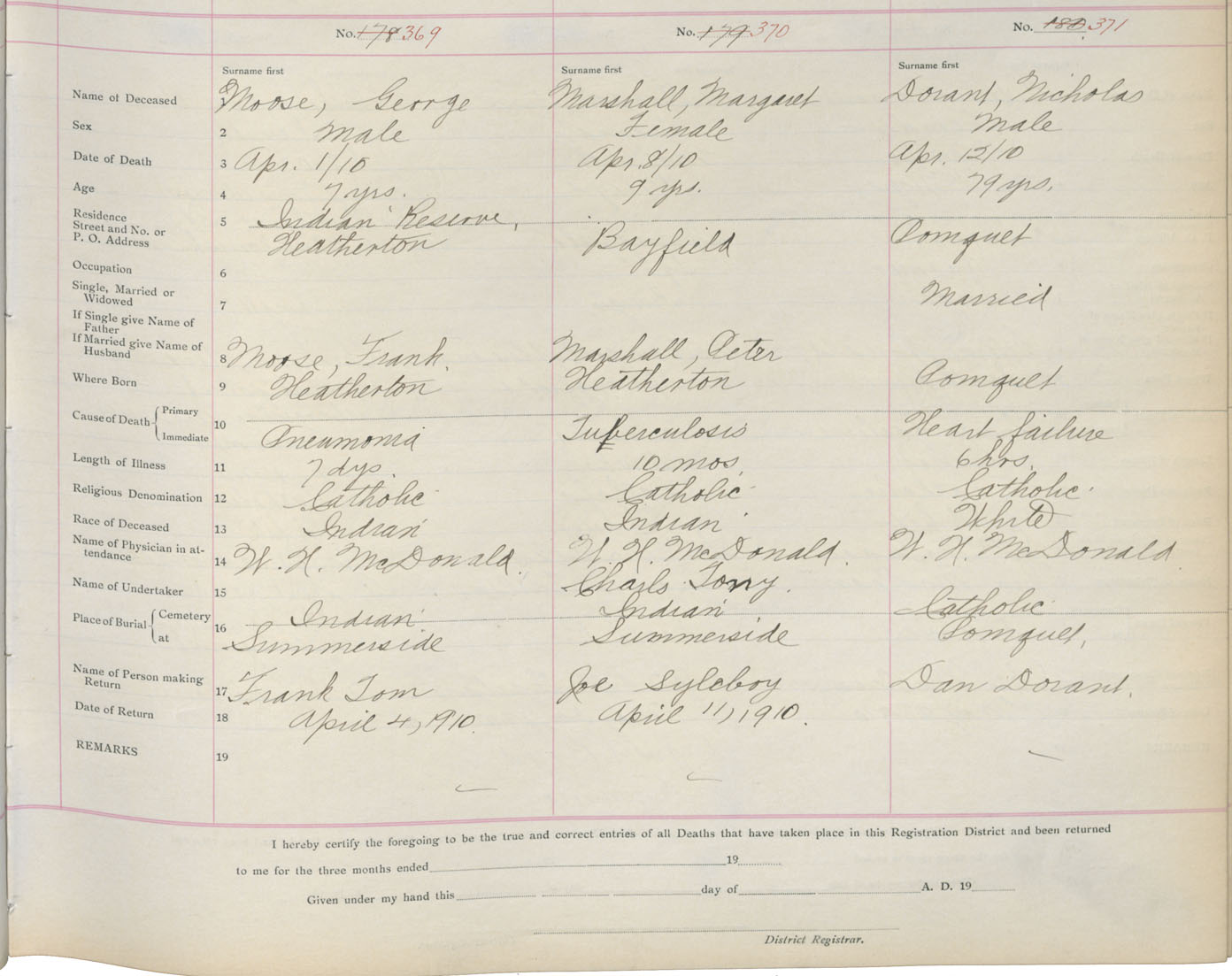 Death Registration: Year: 1910 book: 2 page: 62 number: 369