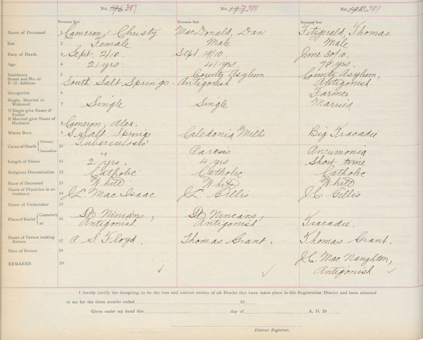 Death Registration: Year: 1910 book: 2 page: 65 number: 387