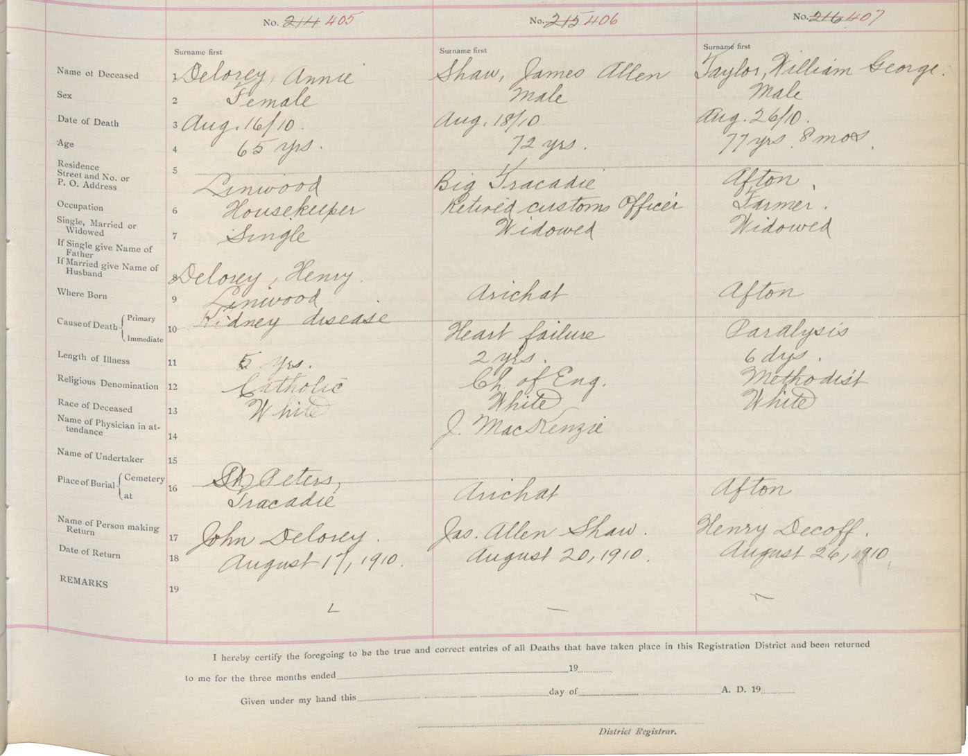 Death Registration: Year: 1910 book: 2 page: 68 number: 405