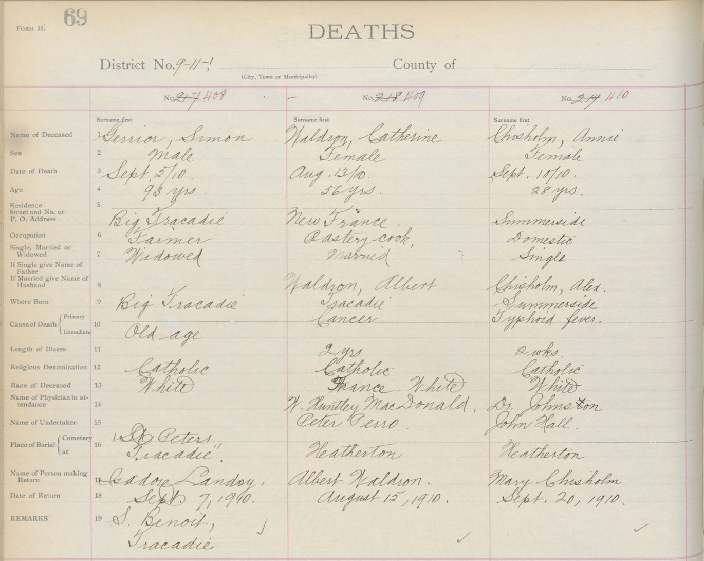 Death Registration: Year: 1910 book: 2 page: 69 number: 408