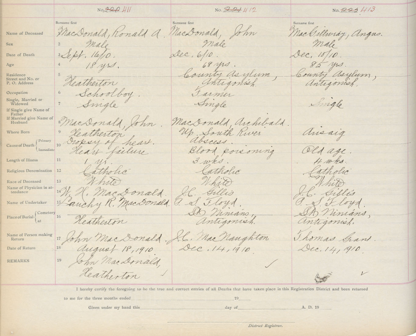 Death Registration: Year: 1910 book: 2 page: 69 number: 411