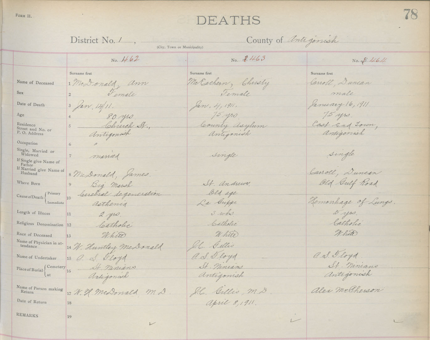 Death Registration: Year: 1910 book: 2 page: 78 number: 462