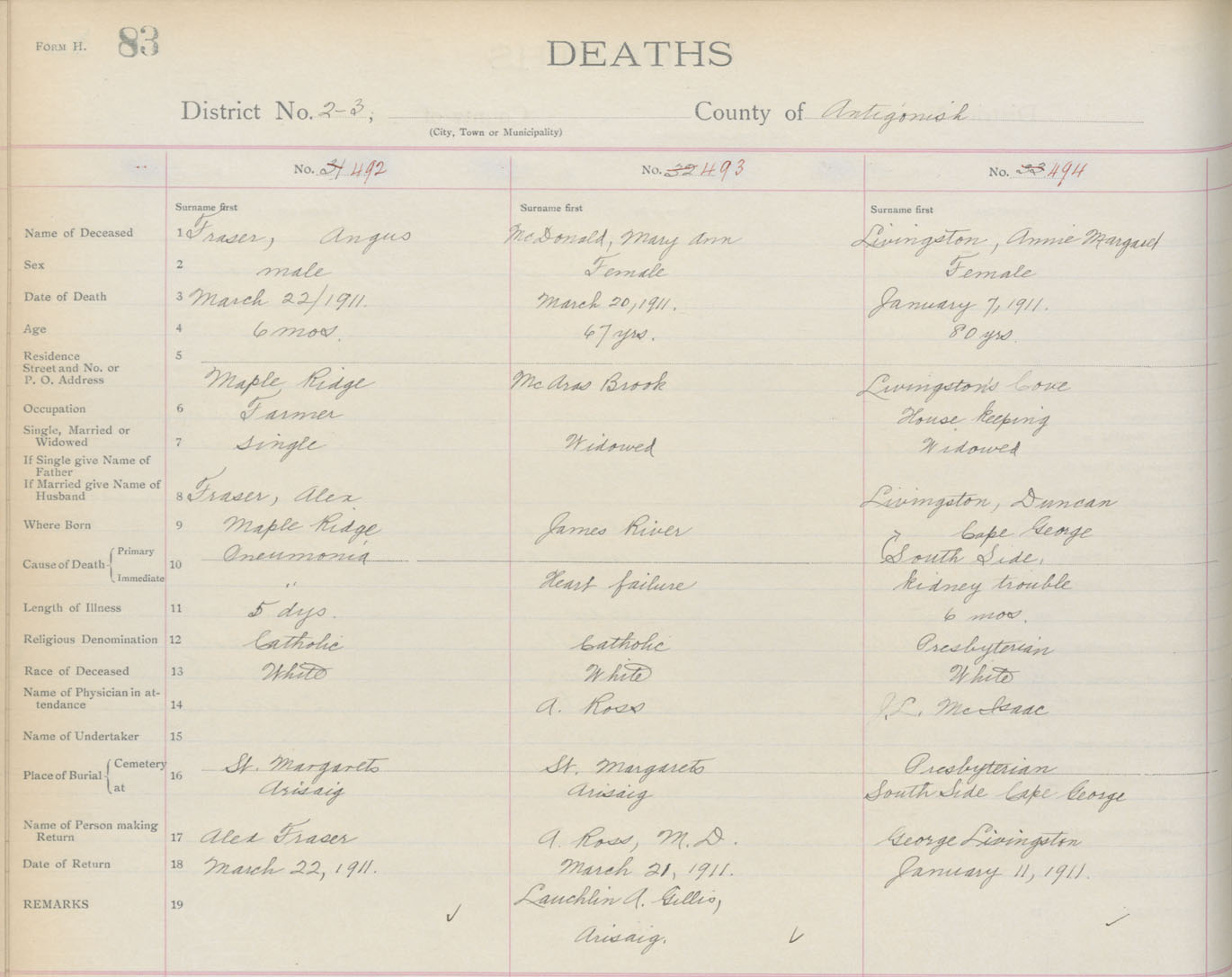 Death Registration: Year: 1911 book: 2 page: 83 number: 492