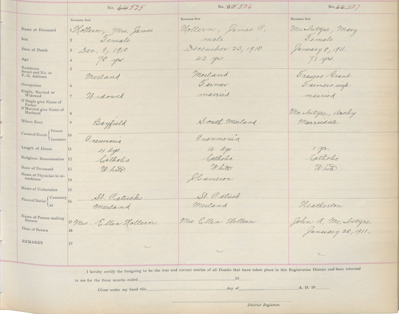 Death Registration: Year: 1911 book: 2 page: 88 number: 525