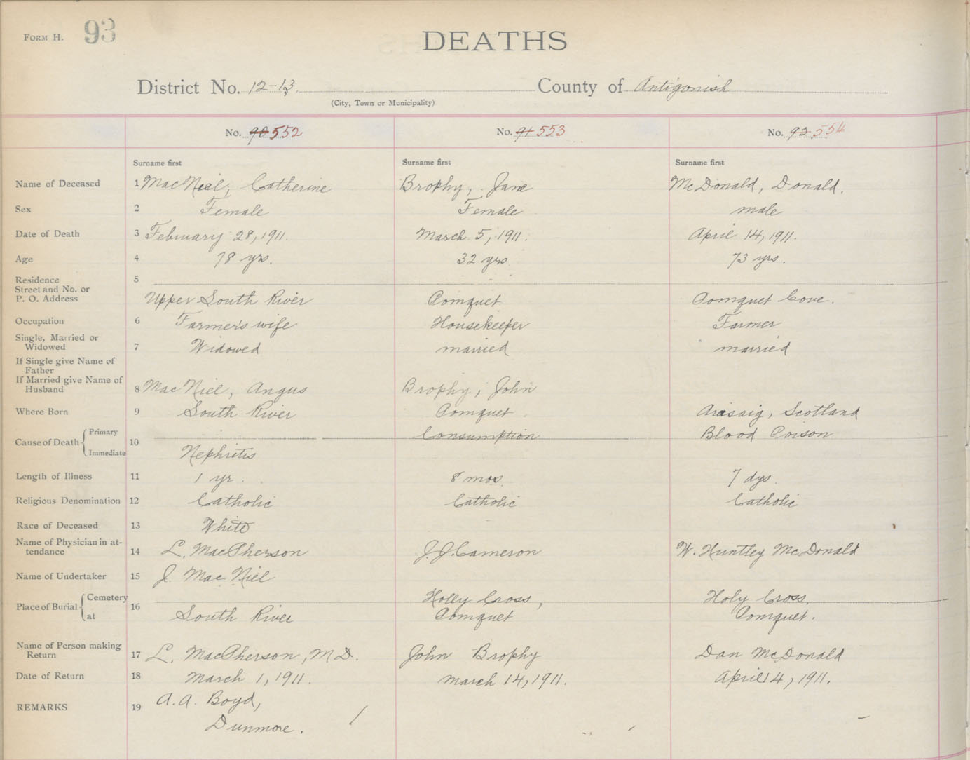 Death Registration: Year: 1911 book: 2 page: 93 number: 552