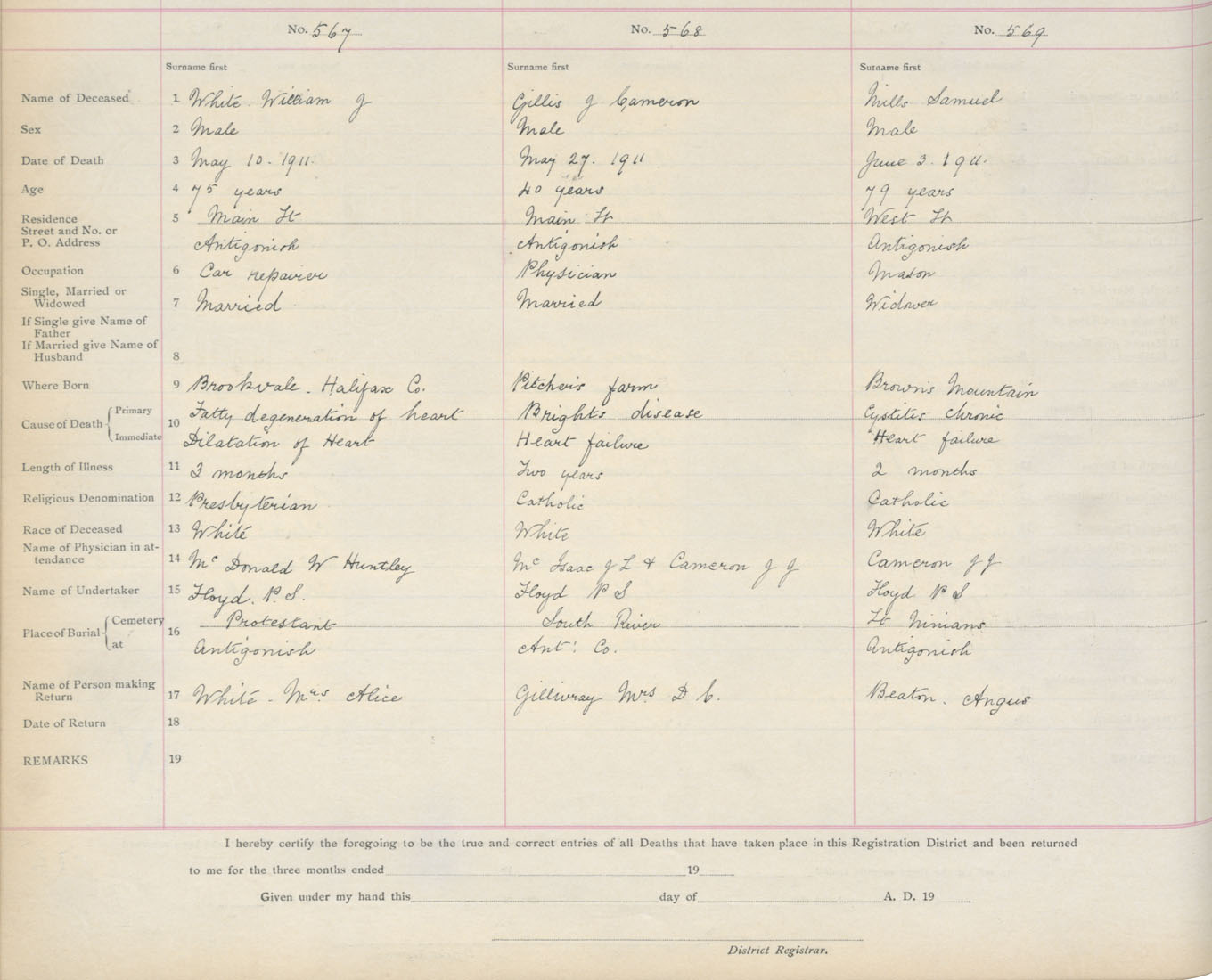 Death Registration: Year: 1911 book: 2 page: 95 number: 567
