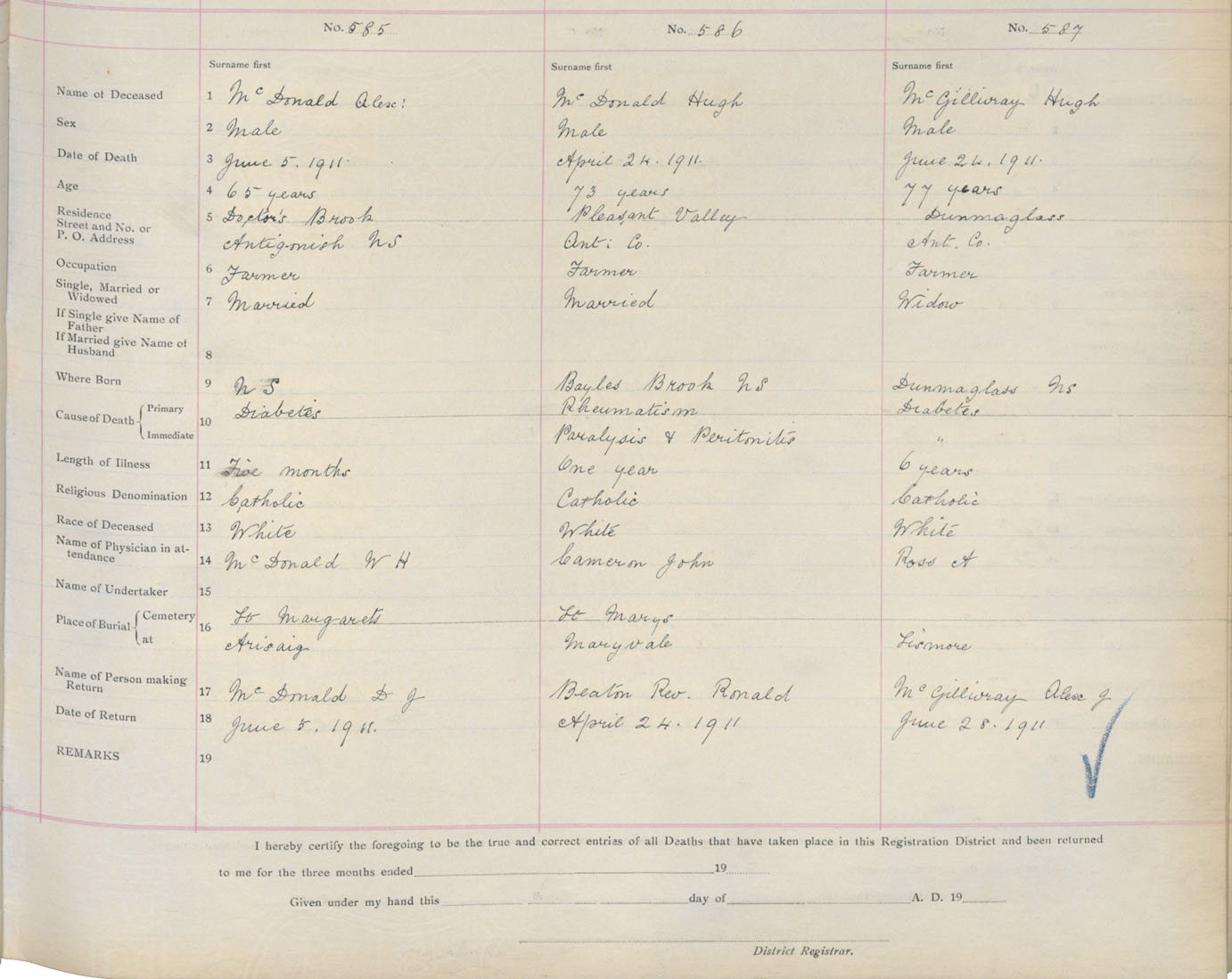 Death Registration: Year: 1911 book: 2 page: 98 number: 585