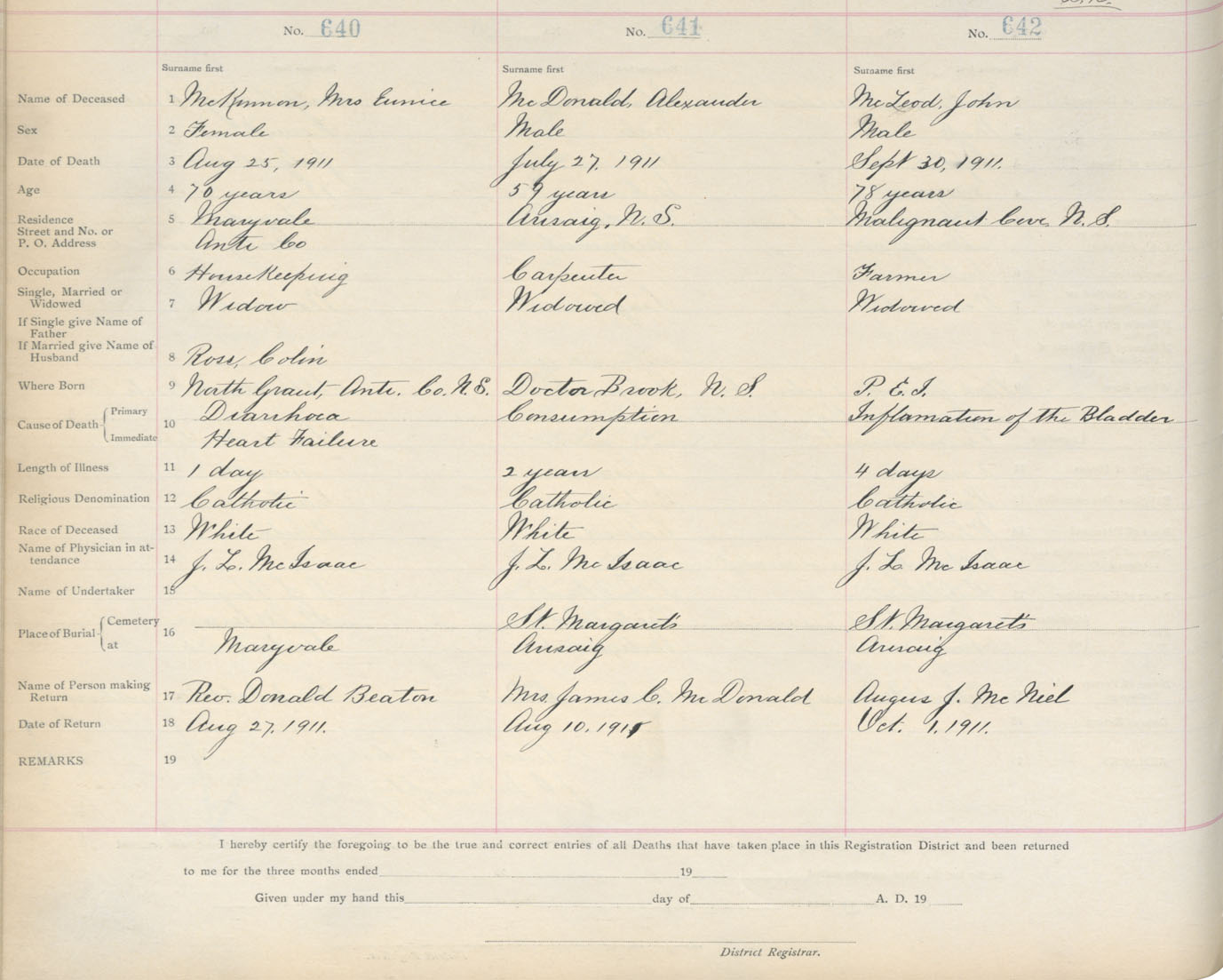 Death Registration: Year: 1911 book: 2 page: 107 number: 642