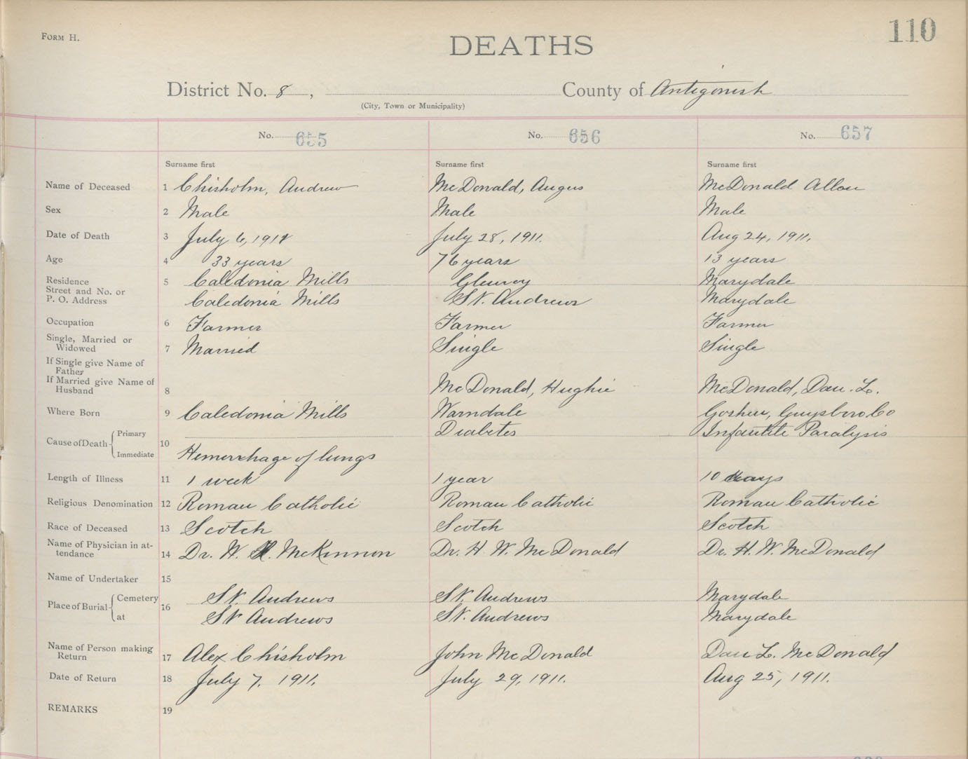 Death Registration: Year: 1911 book: 2 page: 110 number: 657
