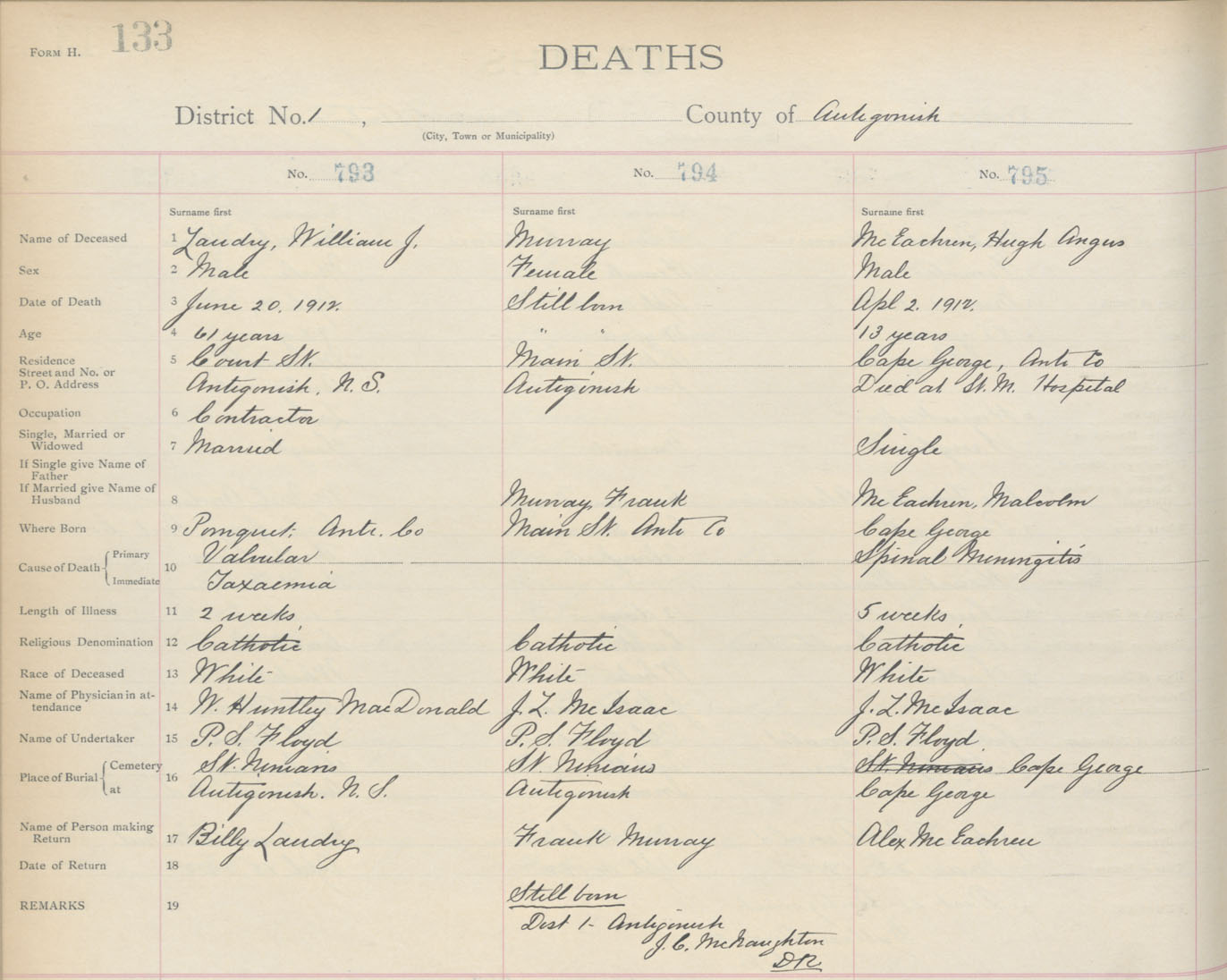 Death Registration: Year: 1912 book: 2 page: 133 number: 795