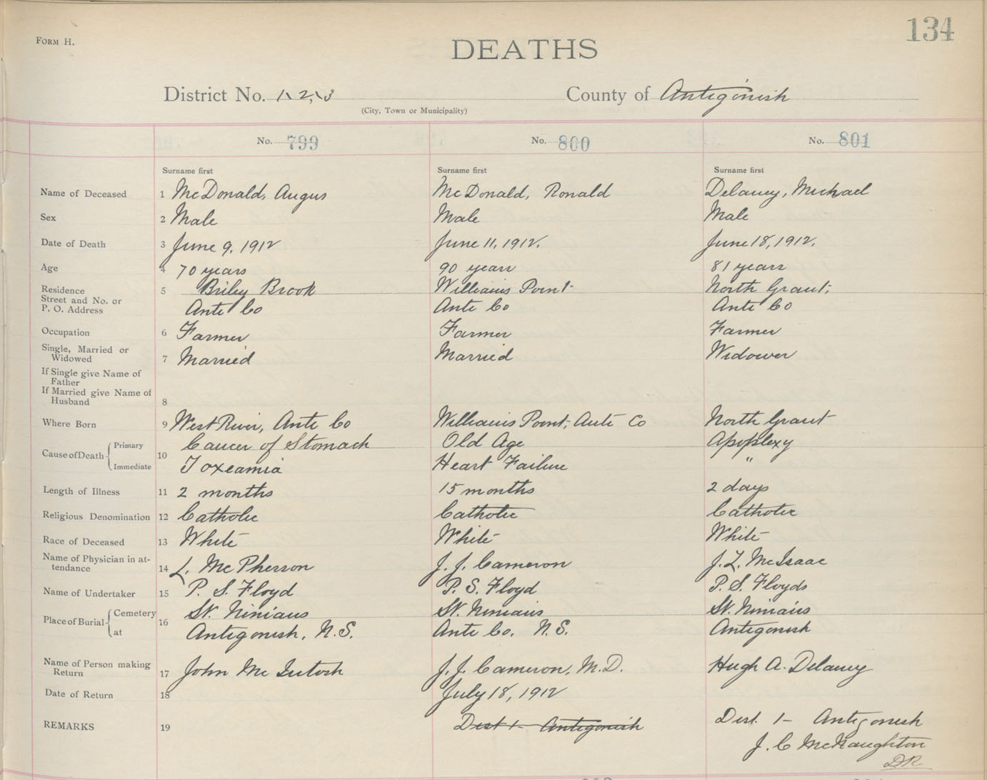 Death Registration: Year: 1912 book: 2 page: 134 number: 799