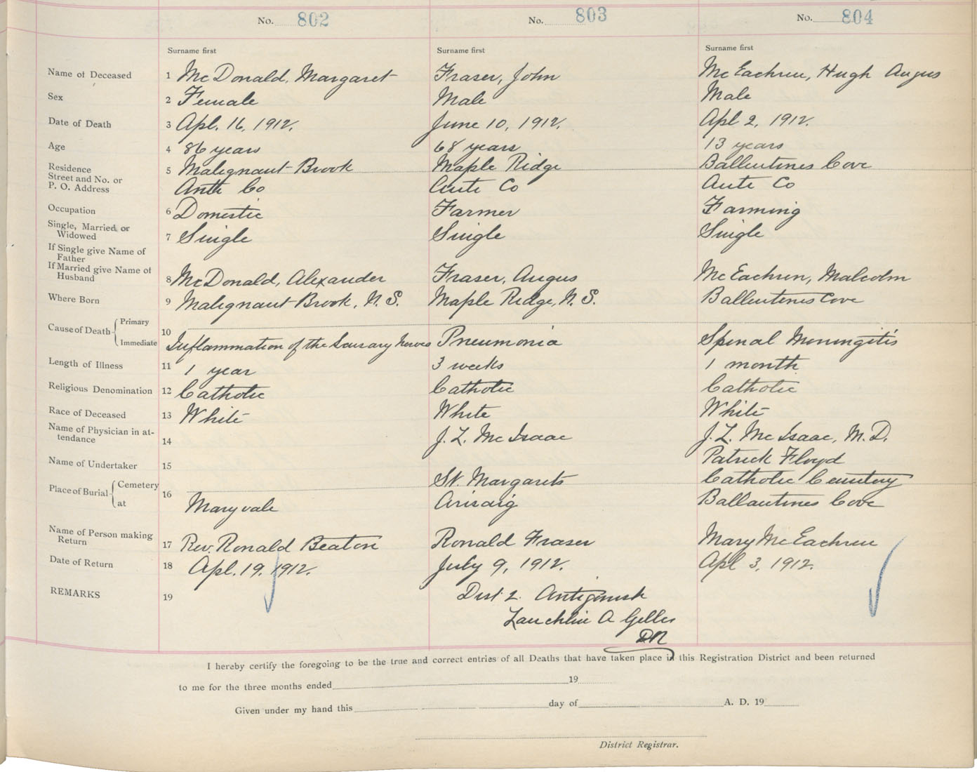 Death Registration: Year: 1912 book: 2 page: 134 number: 802