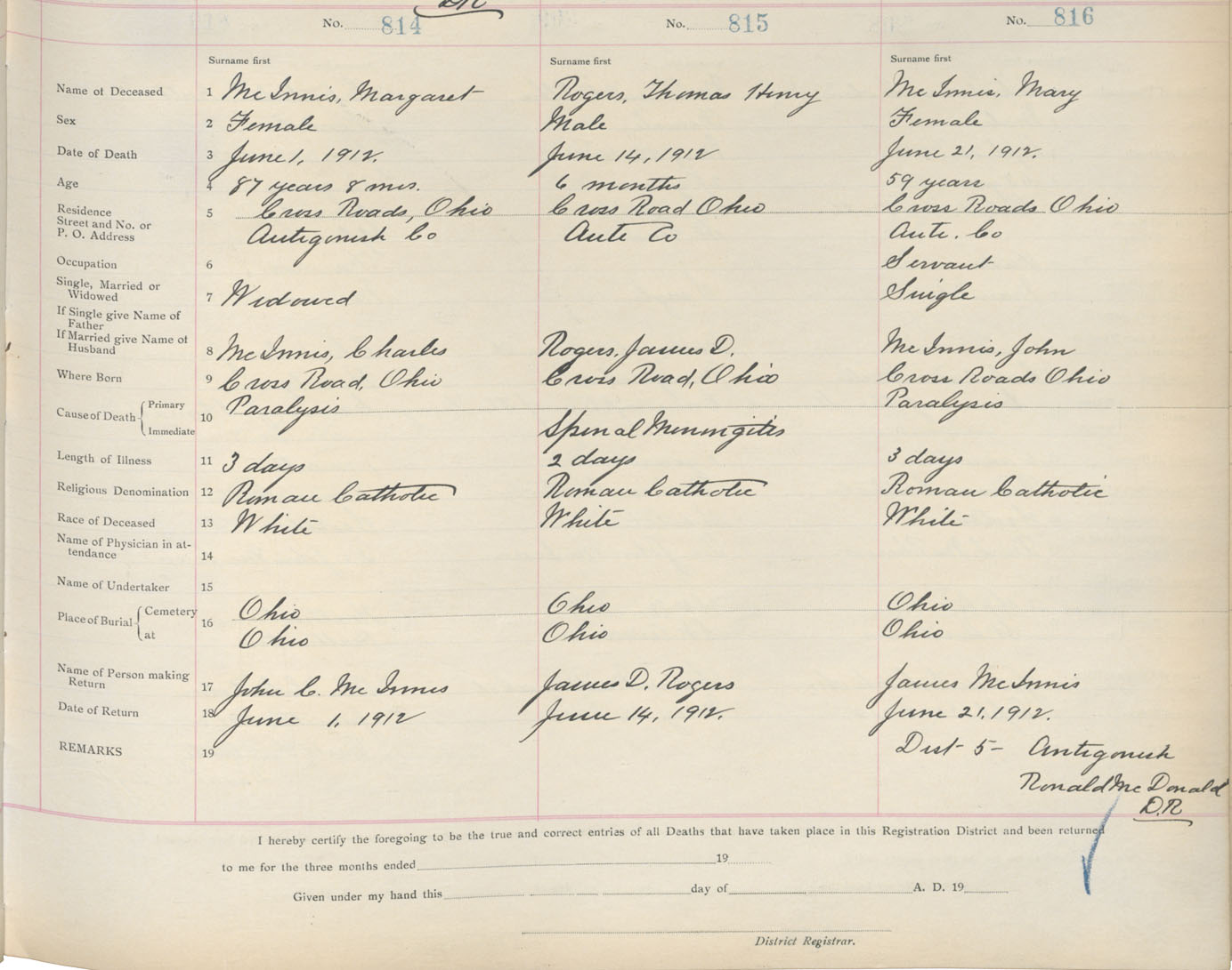 Death Registration: Year: 1912 book: 2 page: 136 number: 814