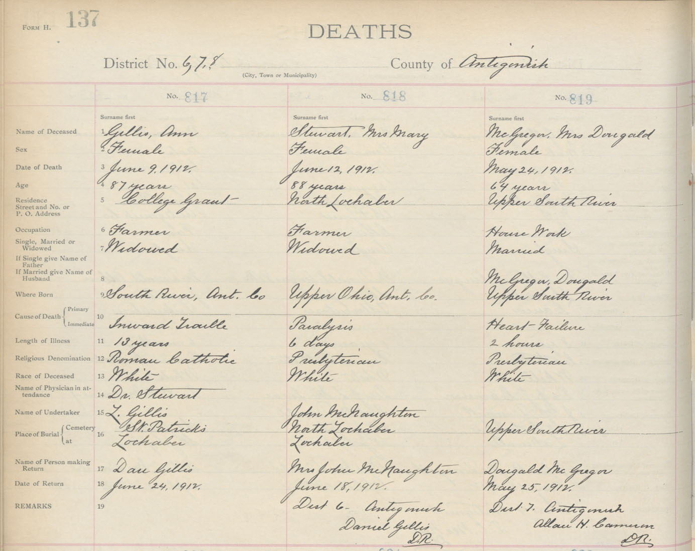 Death Registration: Year: 1912 book: 2 page: 137 number: 817