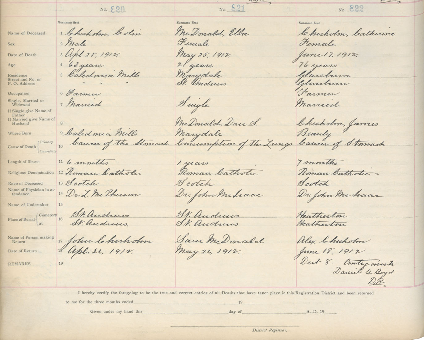 Death Registration: Year: 1912 book: 2 page: 137 number: 820