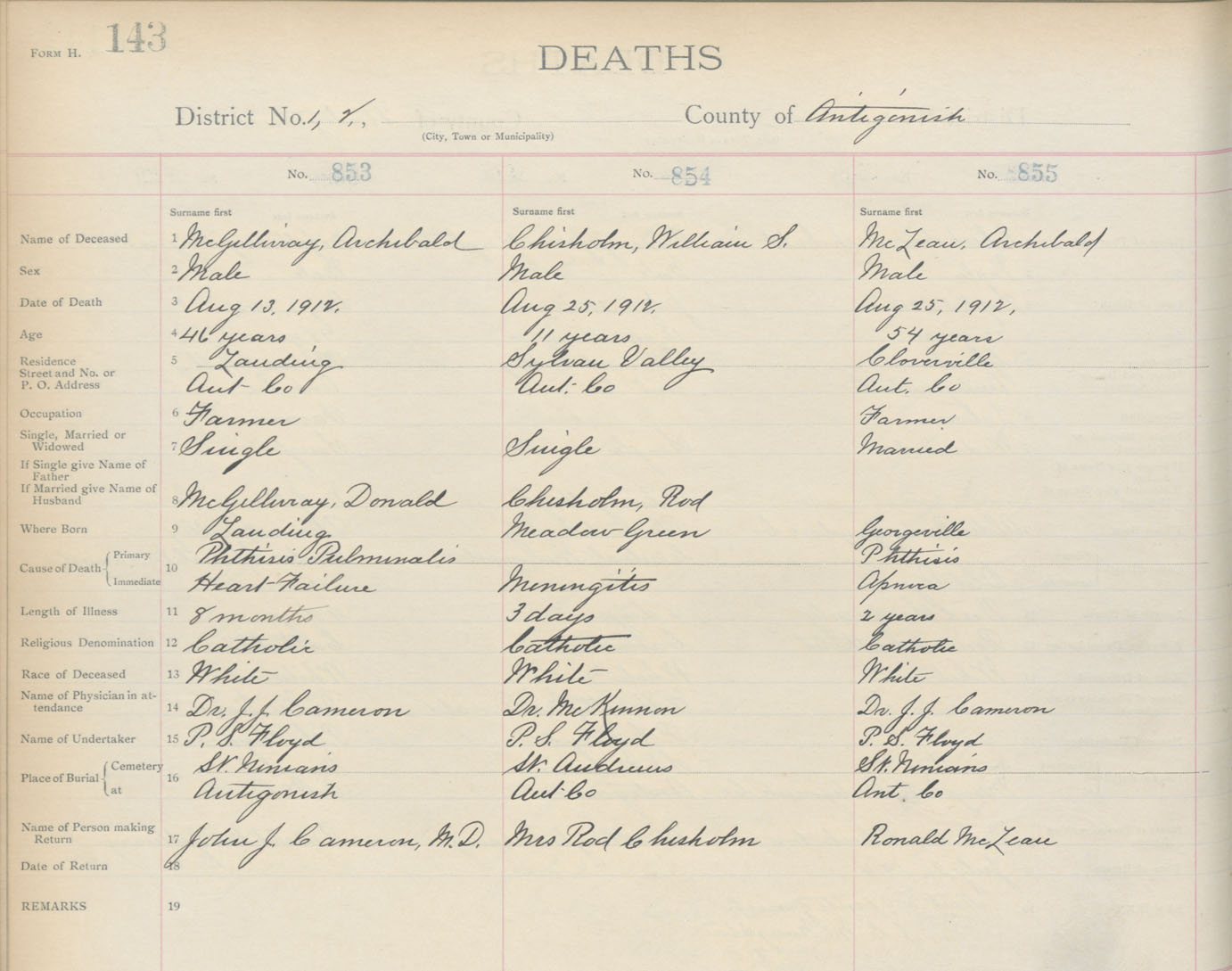 Death Registration: Year: 1912 book: 2 page: 143 number: 855