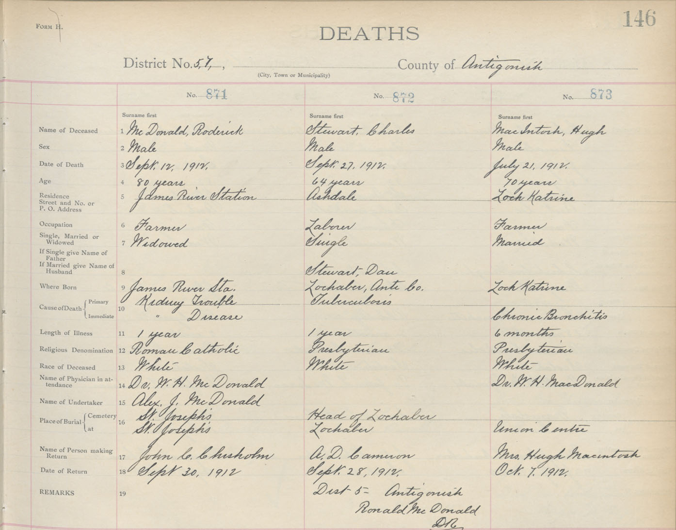 Death Registration: Year: 1912 book: 2 page: 146 number: 871