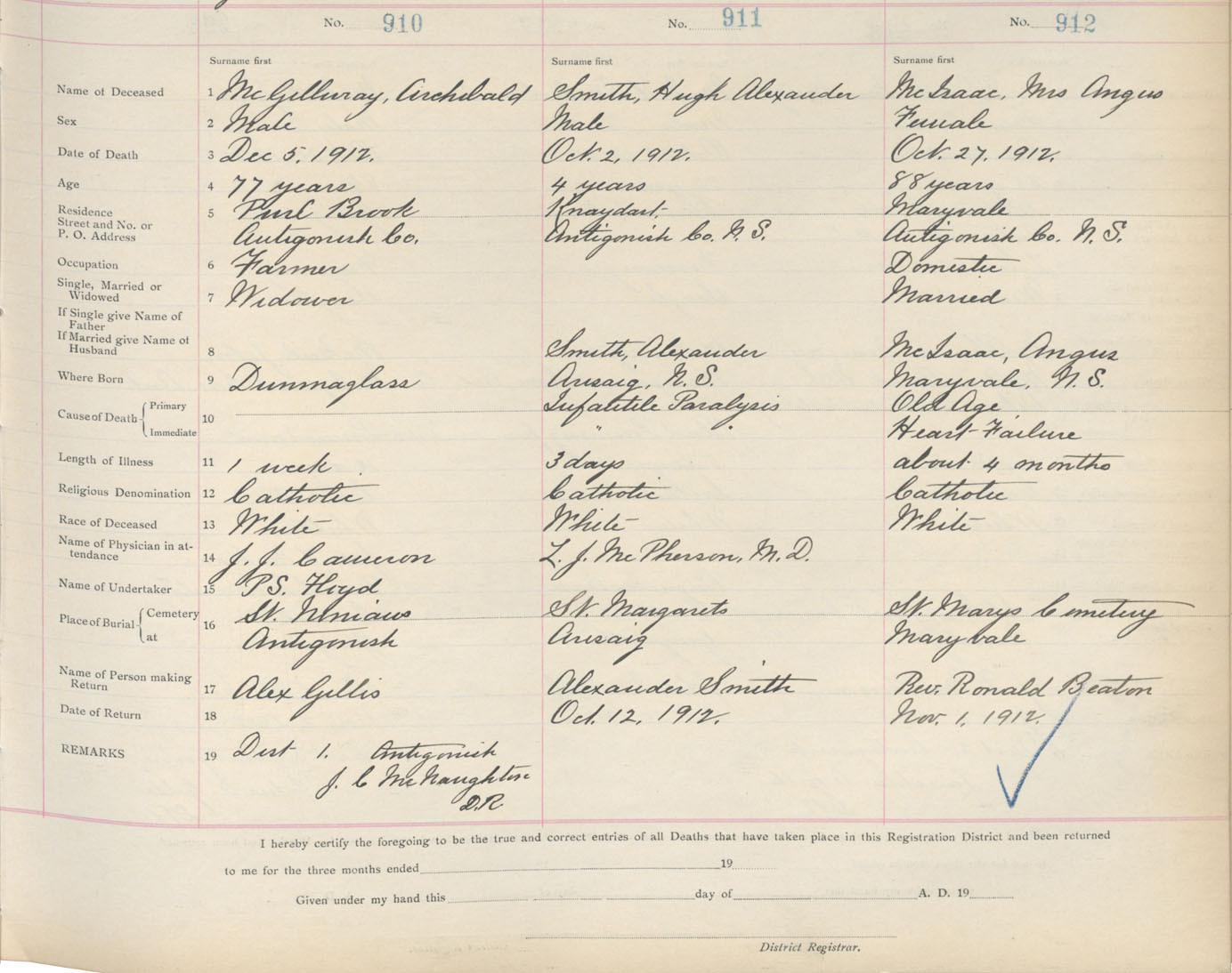 Death Registration: Year: 1912 book: 2 page: 152 number: 910
