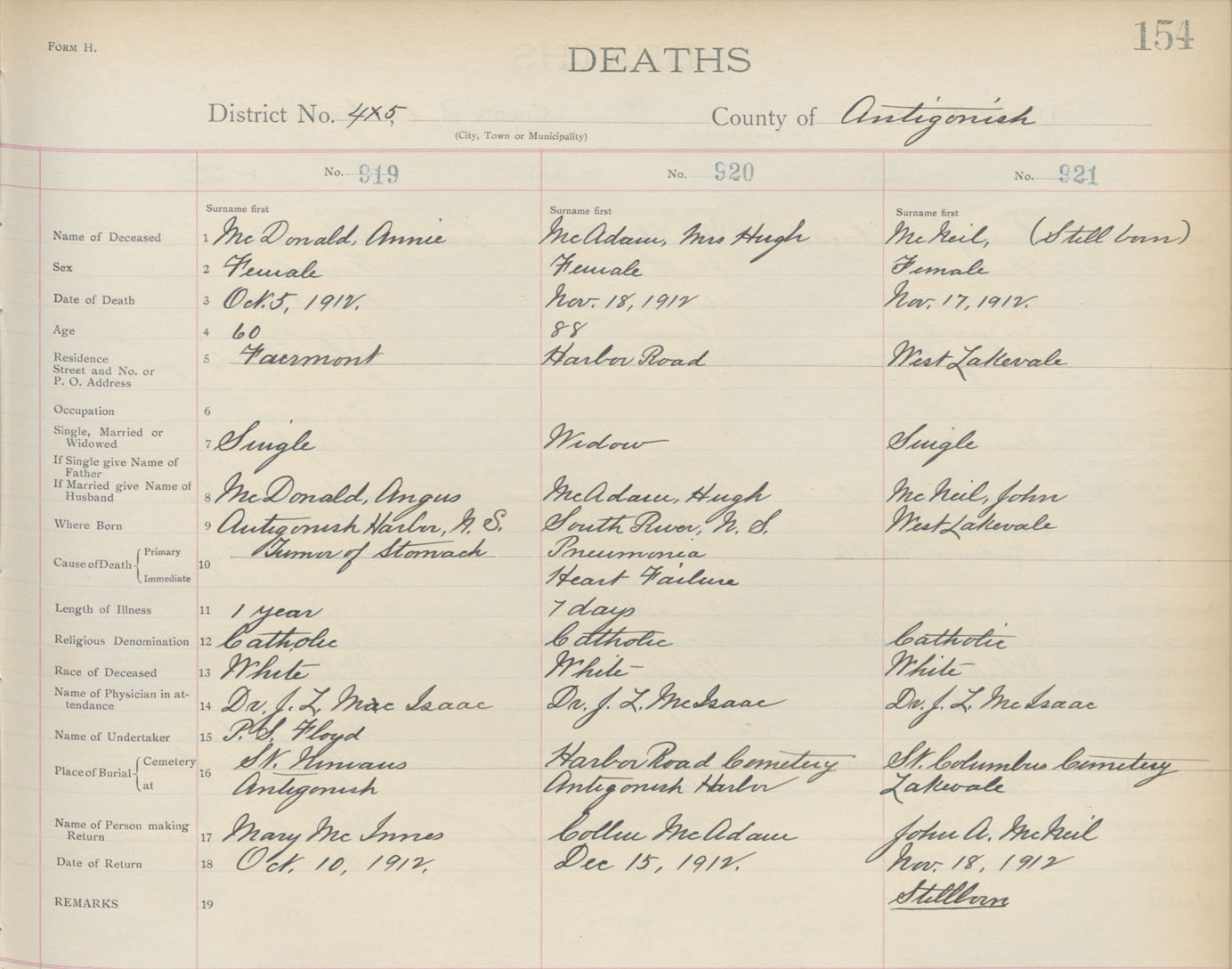 Death Registration: Year: 1912 book: 2 page: 154 number: 919