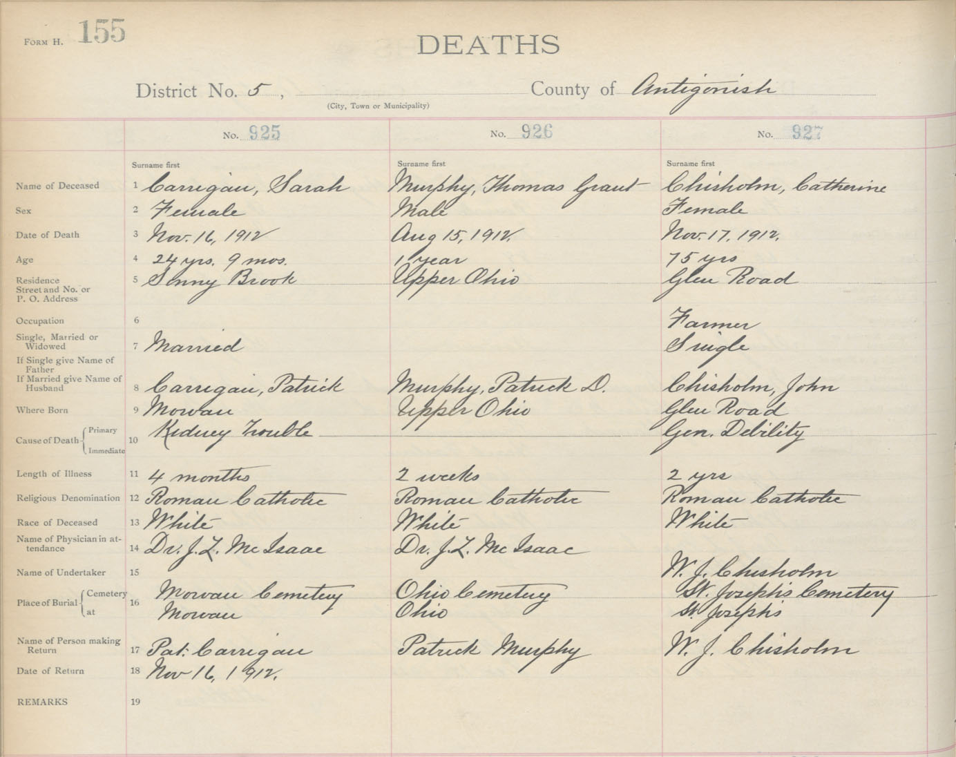 Death Registration: Year: 1912 book: 2 page: 155 number: 925