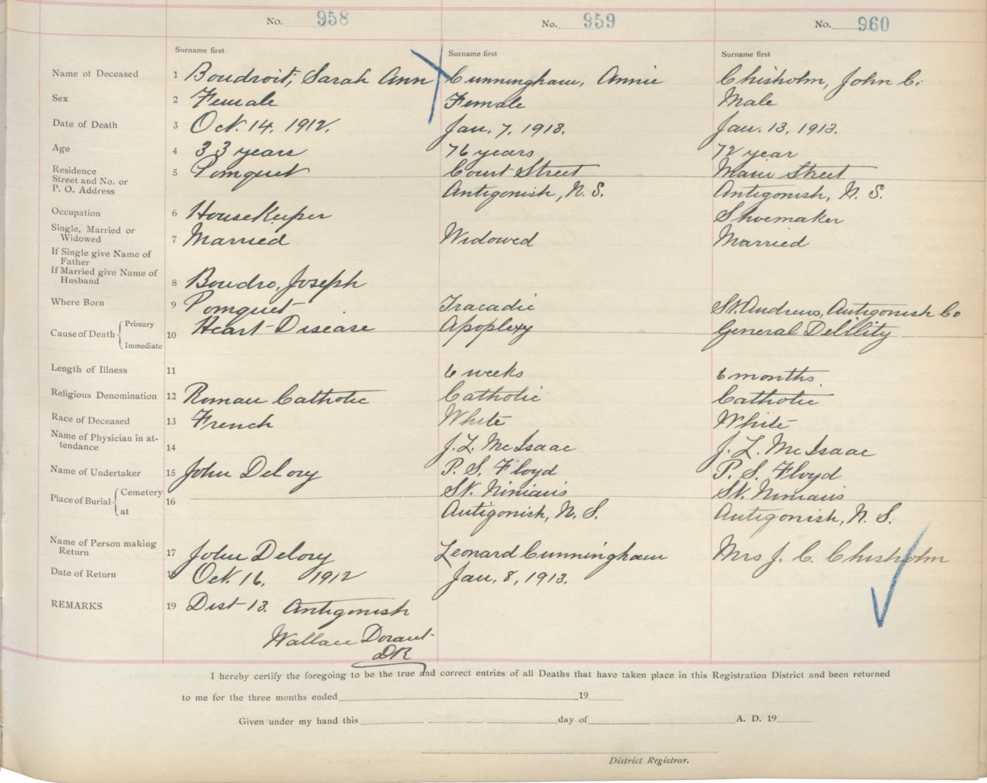 Death Registration: Year: 1913 book: 2 page: 160 number: 960