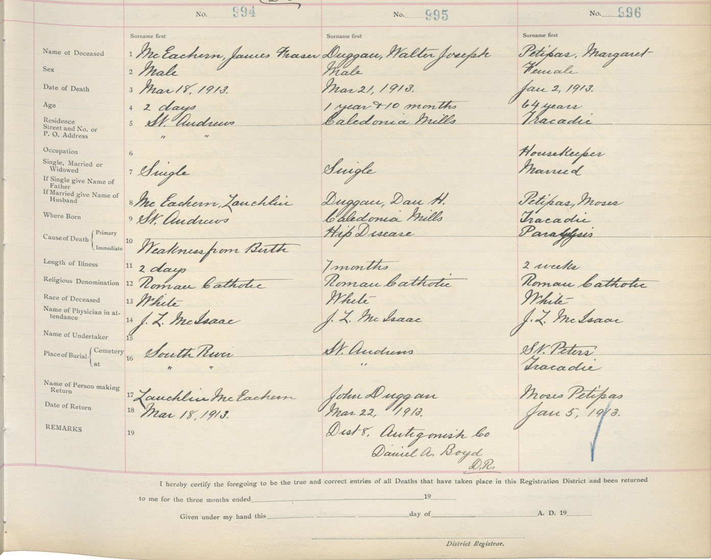 Death Registration: Year: 1913 book: 2 page: 166 number: 994